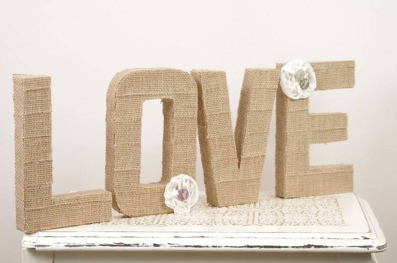 Use the word “love” as an element in your décor and design. Purchase craft letters from your local craft store and paint red or pink. Add the “love” to your tables for a great design element.