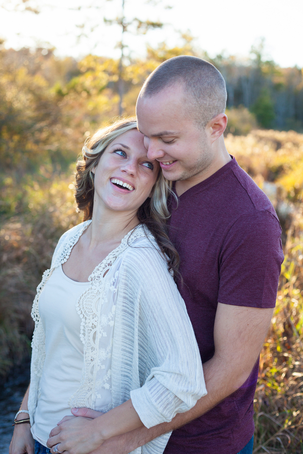 Jenna and Travis really wanted an outdoor engagement session at a location with trees, a wide open field, and maybe even a creek running through it. Luckily the photographer lives near the Kettle Moraine Forest, in Wisconsin, so they had lots of options! The shoot is in Nichols Creek Wildlife area, and the Parnell Tower loop.