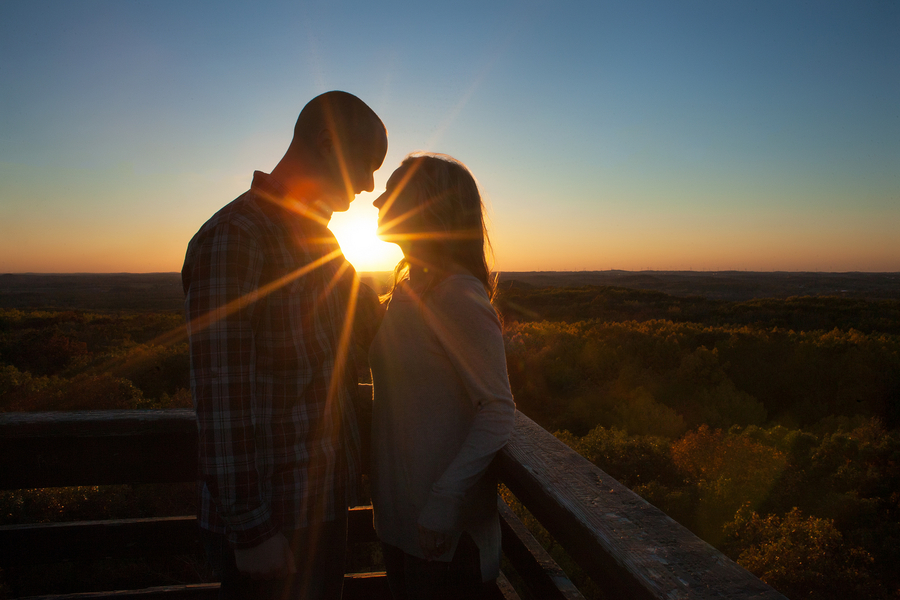 They ended their session by climbing to the top of Parnell Tower, and overlooking the beautiful Kettle Moraine Forest, which made for an epic sunset picture! The best thing about their engagement session was how in love these two are. You can tell by the way Travis holds Jenna and the way she looks up at him.