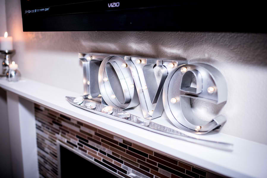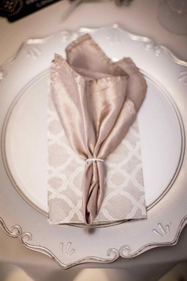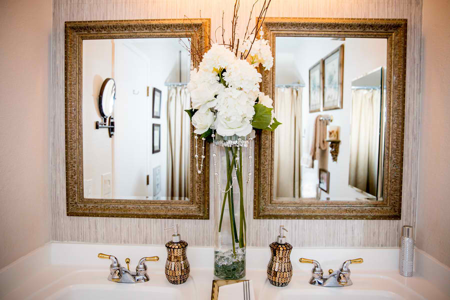 “Madison and her mom are wedding planning geniuses. They started early and ensured every single detail reinforced their theme. From the keys on the gift table hanging from a tree, so that guests could write them a note of well wishes to the impeccably decked out bathroom in hues of silver and gold to compliment their wedding atmosphere. They even put gorgeous silver rocks in the fireplace to ensure that every corner and angle of this backyard DIY style wedding lacked NOTHING in glamour and luxuriousness!”