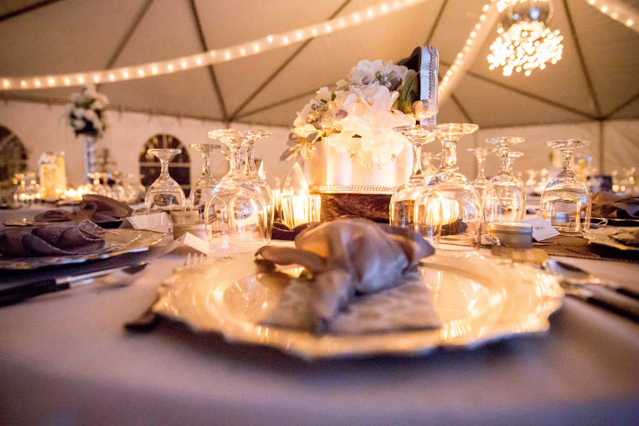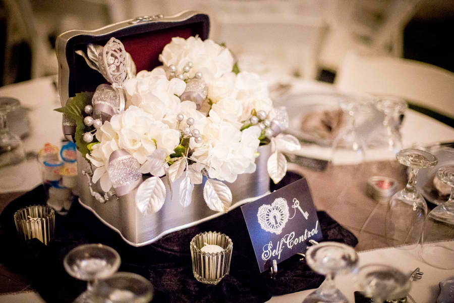 “Madison and her mom are wedding planning geniuses. They started early and ensured every single detail reinforced their theme. From the keys on the gift table hanging from a tree, so that guests could write them a note of well wishes to the impeccably decked out bathroom in hues of silver and gold to compliment their wedding atmosphere. They even put gorgeous silver rocks in the fireplace to ensure that every corner and angle of this backyard DIY style wedding lacked NOTHING in glamour and luxuriousness!”