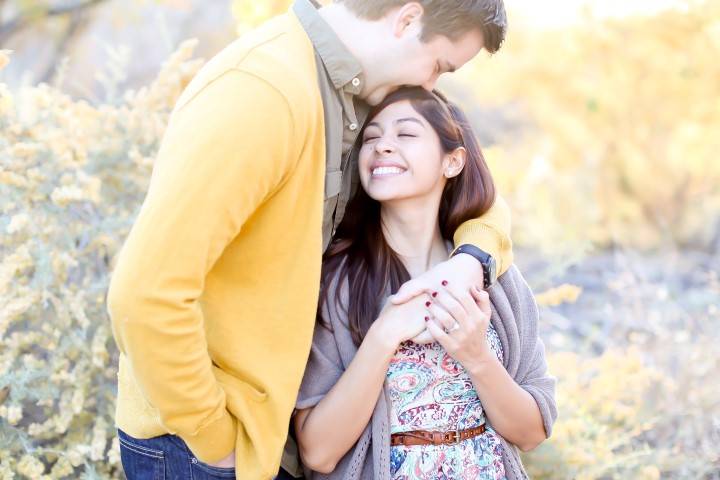 Perhaps our favorite of the bunch, this photo captures a sweet and sentimental moment between the future bride and groom. We love the sun-washed quality of the photo and how the engagement ring is visible. This one is truly beautiful.