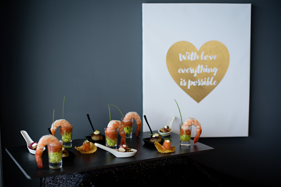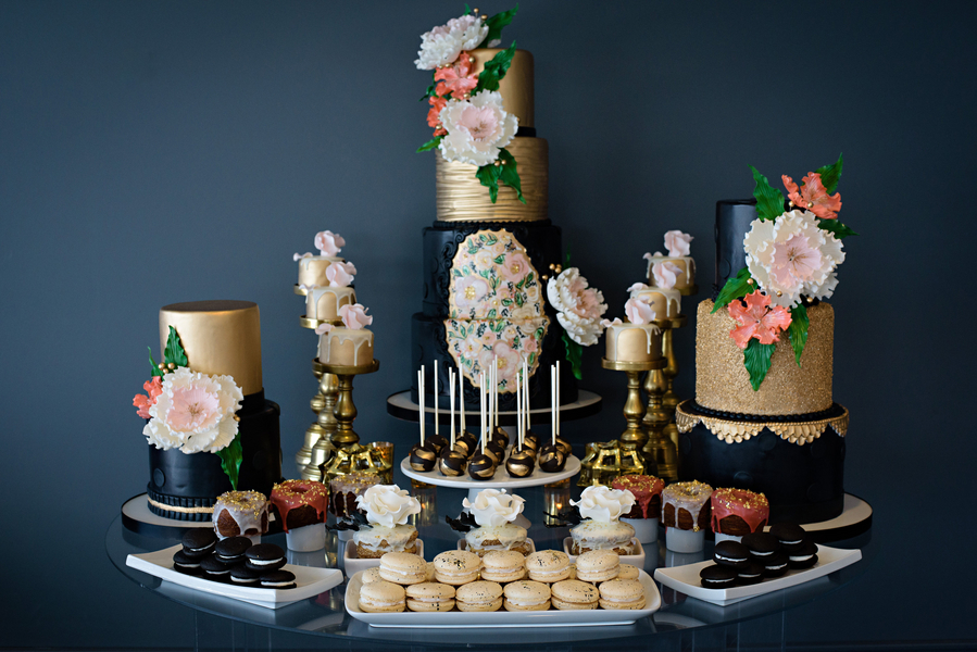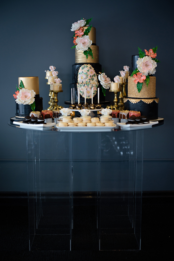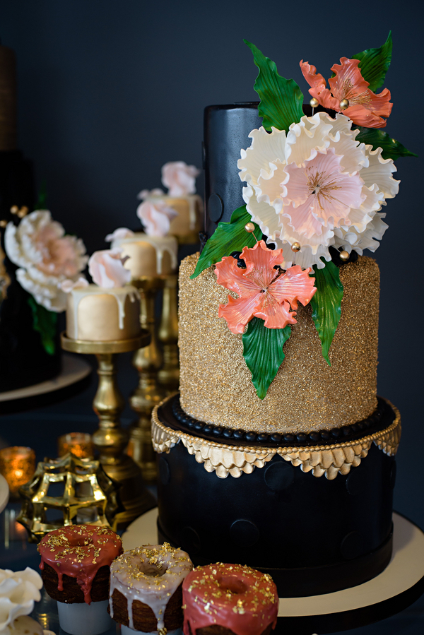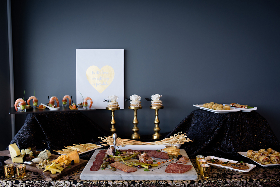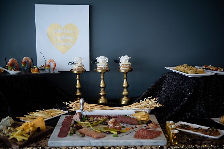 The food. The pièce du résistance in this creative is, of course, the staggering detail in the delicacies provided by North Moore Catering and Every Occasion Cakes. The hand painted detail and edible gold made present throughout the dessert table and savory New York style cuisine assists in creating a tempting palette for any food connoisseur.