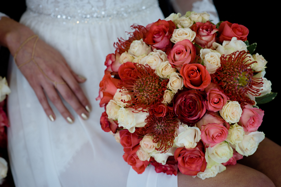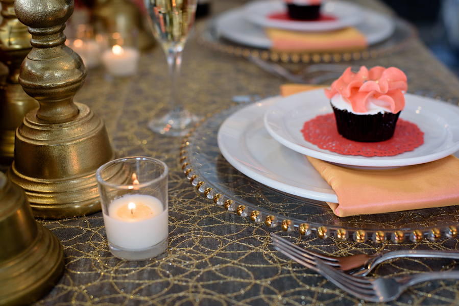 The theme. This shoot showcases alternatives for Brides looking for more of a dramatic edge to their wedding decor, with a focus on deep corals and ivories with hints of gold and black.