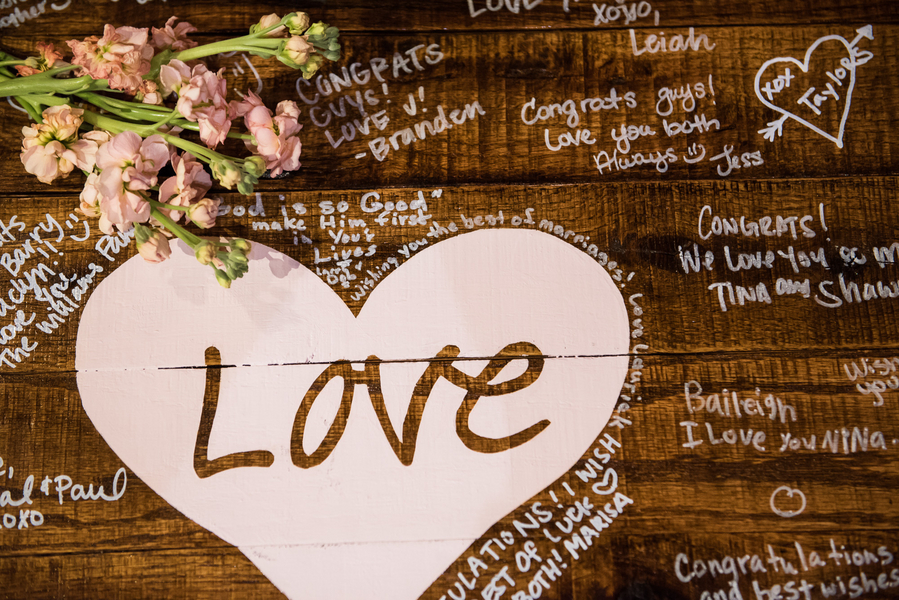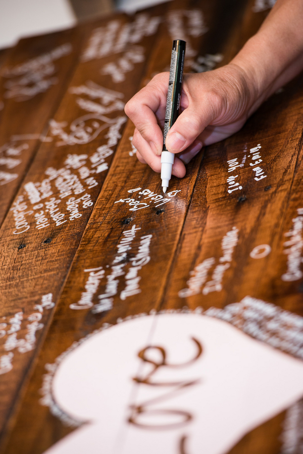The DIY projects. The sign-in wood palette was very special to the couple as her brother-in-law and sister made it. Using their engagement photos as the table numbers also gave a special touch.