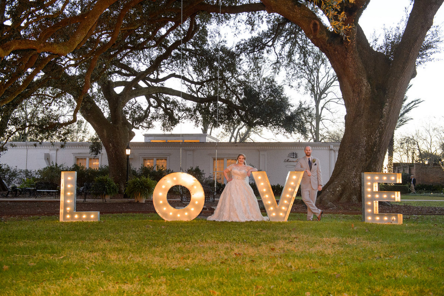 The huge LOVE marquee sign was placed under a beautiful oak tree between the ceremony and reception sites. It was a great way to tie the two places together and made a great backdrop for pictures!