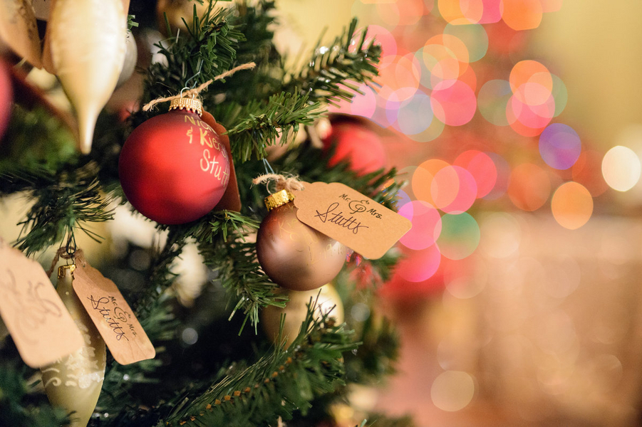 Since the wedding was just a few days before Christmas, they made personalized ornaments for their guests to take home. Some were decorated and others were signed and had the wedding date on them so guests could choose whichever they preferred.