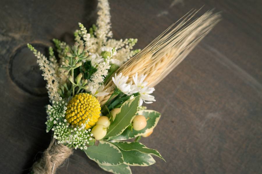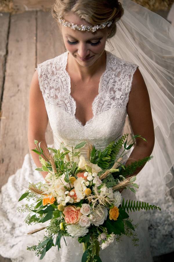 A lovely backyard wedding this turned out to be for Karen and Chris! The yellow and green color palette, the decor, and the flower arrangements all made for a wonderfully rustic affair. The men in their cream-colored suits looked handsome alongside the girls in their soft mint dresses, cowboy boots, and denim jackets. The photos from their little pictorial on the John Deere tractor are some of my favorites. I particularly adore their “guestbook” in the form of a door — love will certainly be an open door for these two (*wink*). Karen and Chris make such a great team and they put in a lot of time and effort into this wedding. Read all about the details below and have fun browsing their gallery for more inspiration for your own backyard wedding!