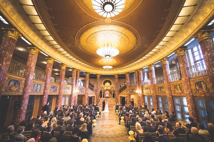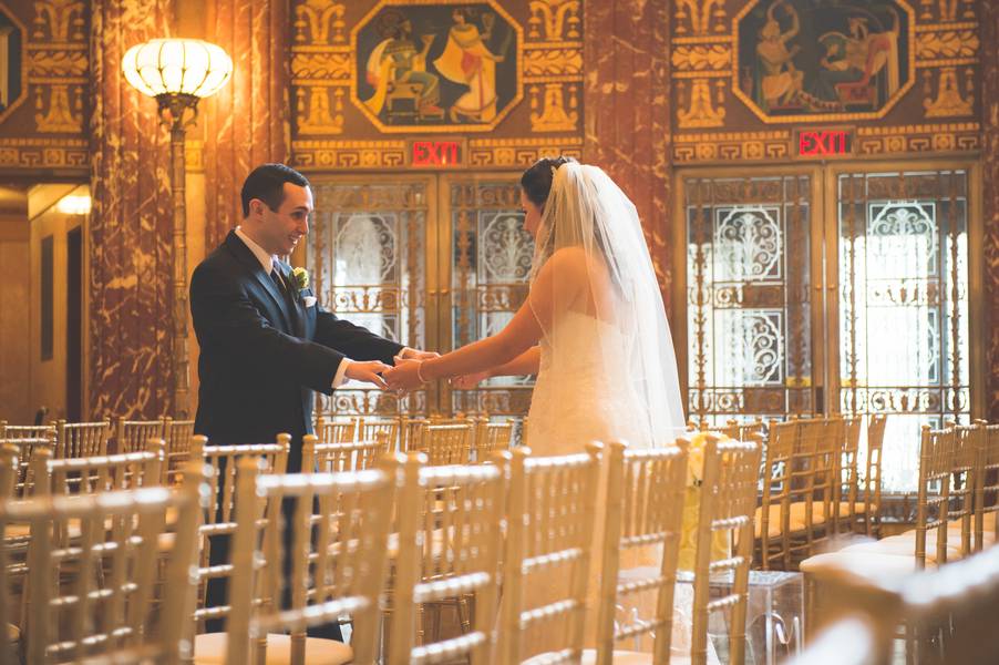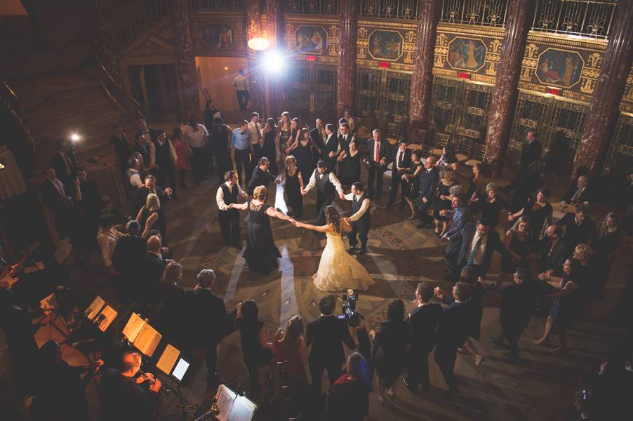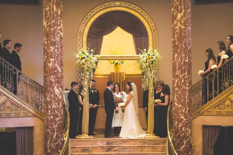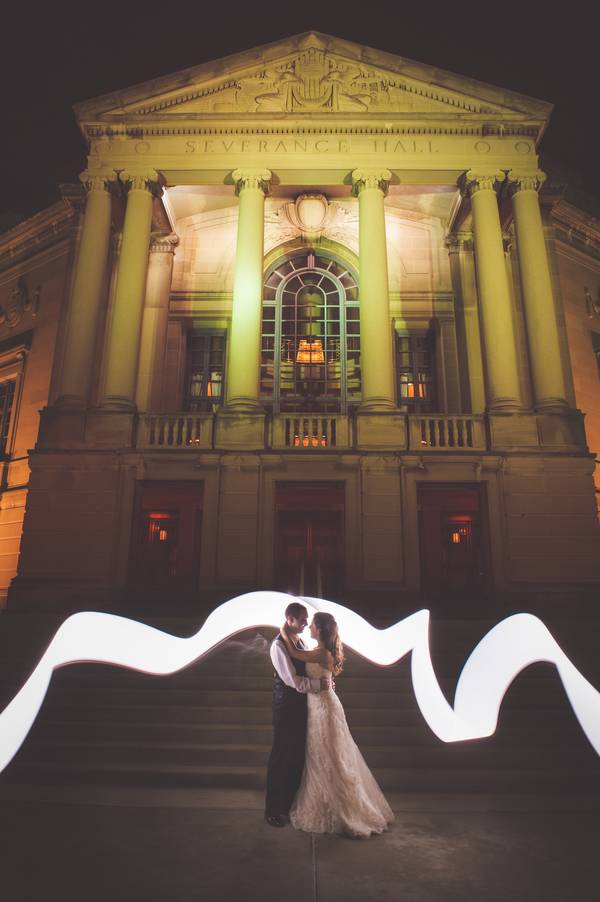 The Venue! The classic look of Severance Hall directed the formal tuxedos for the men, the long gowns for the women, and color scheme with blacks and gold details. The bride’s dress was a little non-traditional and was also gold! The room was so lovely and warm, that white would have been too stark. The gold kept with the whole theme!