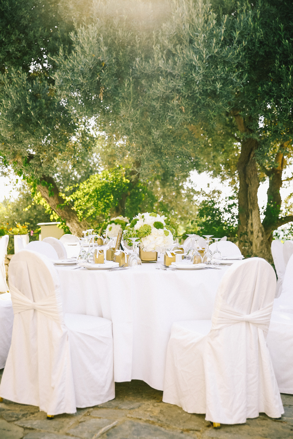 Gold and white, a timeless modern choice, were their main colors and played against the vivid colors of the local landscape gorgeously.