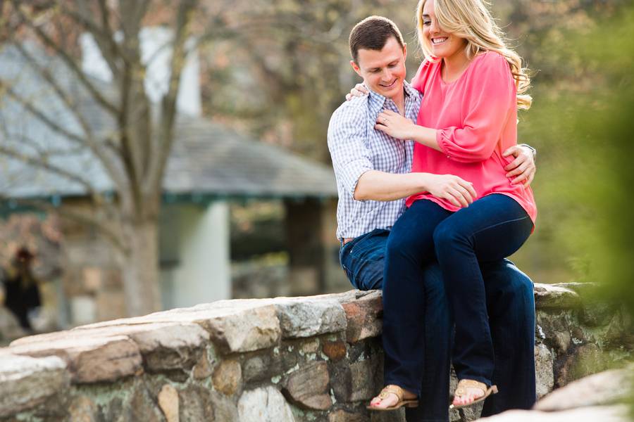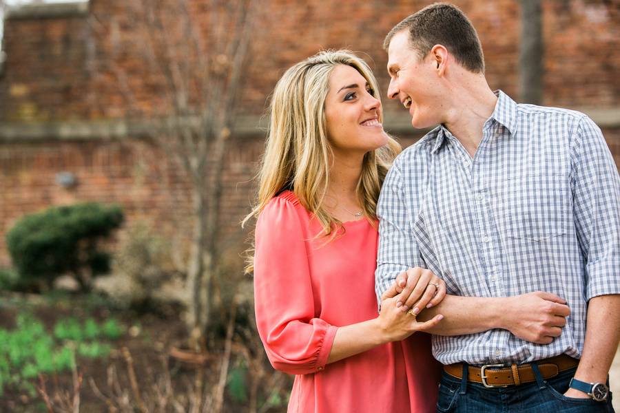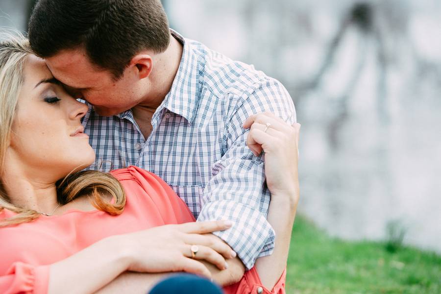 How he asked her: The Proposal was a snowy February night and Chris had Groupons for ballroom dancing lessons as a decor and excuse to get dressed up. They met up at the bar where they first reunited then began to head over to the ballroom. There was a park (Binney park) with a beautiful pond near her parent’s home that was pretty significant to her. As they walked through the park on their way to the ballroom, Chris asked Elizabeth to marry him. It was a total surprise and she said yes!