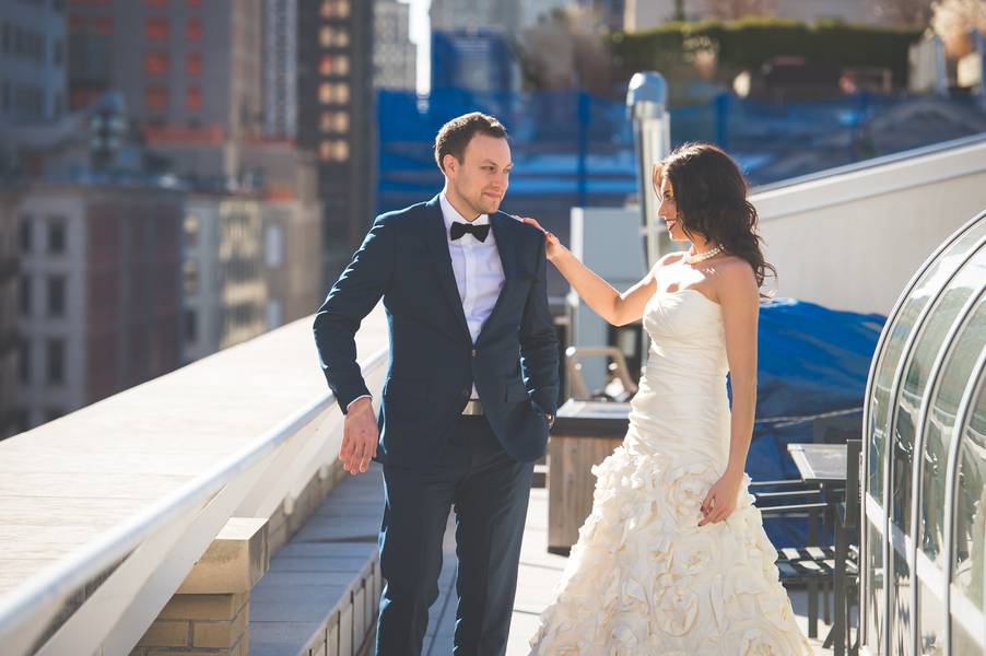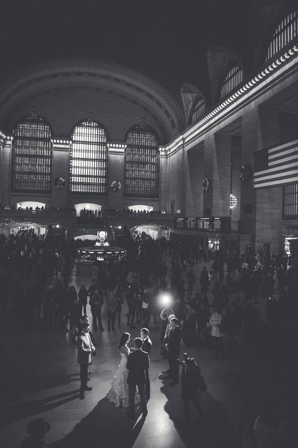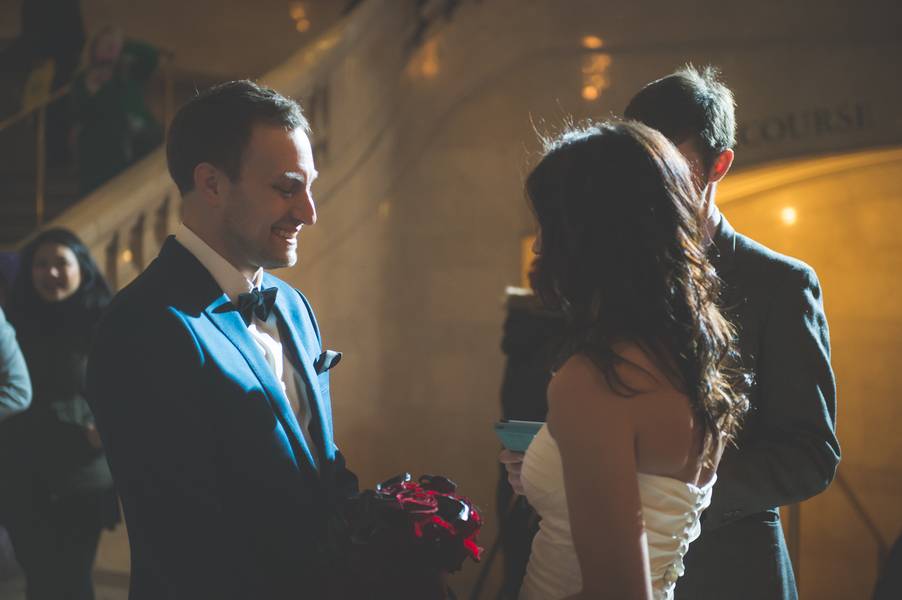 The ceremony in Grand Central Terminal was exactly what I wanted it to be. Spontaneous, fun and a surprise! As we walked in and met our officiant my heart started racing. We walked over to one end of the building dead smack amongst the hundreds of people and just like that..our wedding began. Our officiant did a wonderful job capturing the story of us and delivering it perfectly. My favorite moment of the ceremony had to be of course the kiss. When we said I do and kissed, the entire Grand Central Terminal had a roar and cheer of excitement for us! It was unreal. Felt like 1000 eyes had been watching yet we blurred it all out to just us. It was so magical!