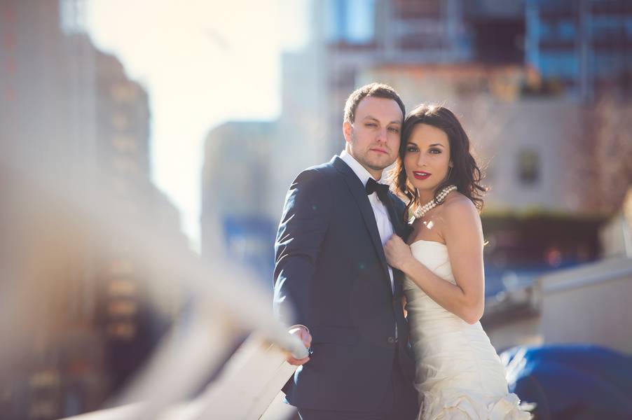 The wedding day outfits were total GQ inspired. We wanted to look and feel tailored and fabulous. Famous! I was wearing an ivory Jenny Lee gown I purchased at Big Rock Little Rooster in Columbus, Ohio and Josh is outfitted in The Ludlow suit from JCrew. The Italian wool suit Josh wore was perfect for the winter weather in NYC and made his baby blues pop! I love textures so I picked the white fur coat, red lipstick and the black velvet bow tie for Josh to complete style.
