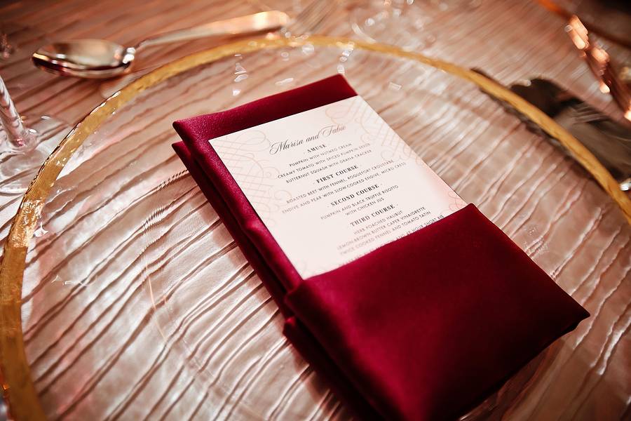 Marisa loves bold colors, so she chose a red and gold scheme for the wedding.