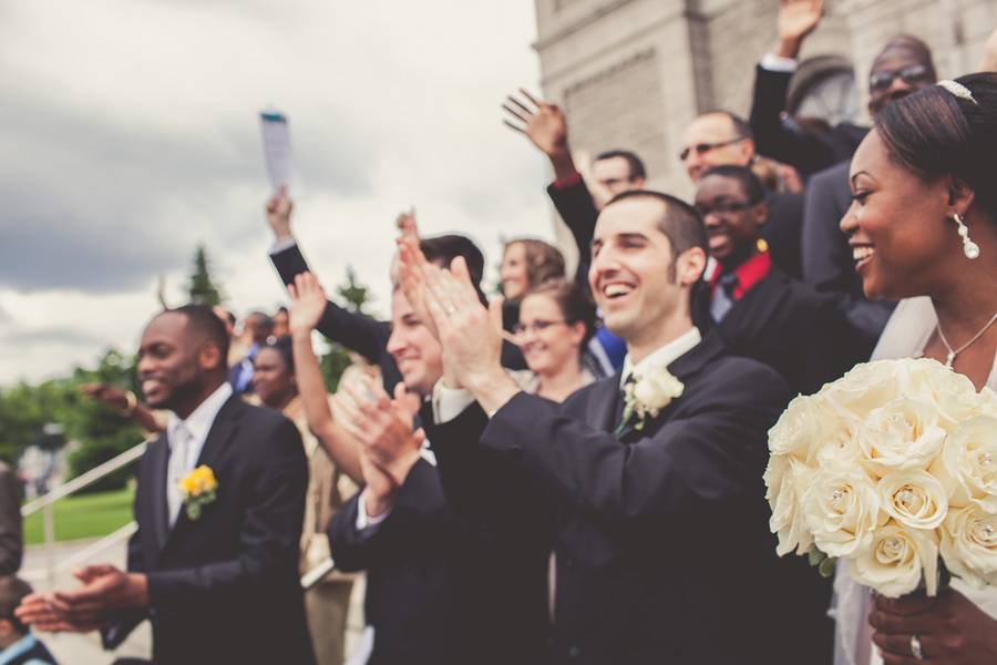Sometimes, wedding days go off without a hitch from start to finish, as pieces of a puzzle that fit perfectly together. However, sometimes, this so important day has a few little mishaps up its sleeve which turn into anecdotes that feed discussions for years to come. Marc and Mercedes’ wedding day is part of the latter. We first made our way to Château Joliette where the bride and groom had chosen to prepare for the ceremony. According to our schedule, we only had the time (and the task) to photograph the bride while she was getting ready. When we found out Marc was also at the hotel, we simply couldn’t resist the opportunity of snapping some shots of him as well! We then proceeded to the Joliette Cathedral for the ceremony just a few blocks away from the hotel. While in front of the church, we tried to gather all guests for a group picture. TRIED because there were over 200 of them! Good thing the front steps were large enough!