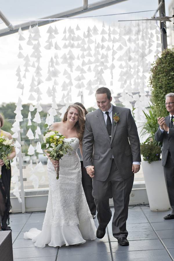 Kelly and Josh got married on the rooftop of a beautiful restaurant in downtown Raleigh. As the ceremony was coming to an end, you could see the storm clouds rolling in. The sky turned grey, and just after they said “I Do!” and had their first kiss as husband and wife, down came the rain. It was such a magical moment! The guests had plenty of time to go downstairs and hide from the rain, and the venue covered the rooftop – leaving Kelly and Josh to have a few quiet minutes together watching the rain and reflecting on their memorable wedding day before they headed for the reception.