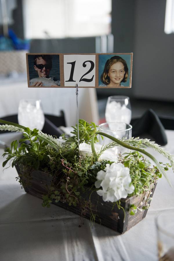 Today’s featured wedding is another effortless beauty with a complementing balance between sleek and casual. Adorned with contrasting solid colors, Joshua and Kelly’s wedding is downright minimal and chic. The color scheme isn’t the only interesting thing about their wedding. They also had a unique idea of accompanying the table numbers with the couple’s photos at that age. Witness a wedding as sweet the Krispy Kreme‘s glazed donuts they served!