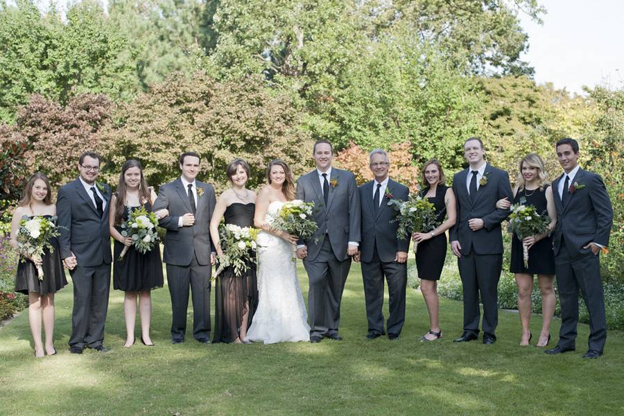 Kelly’s dress was so chic and elegant, with beading all over it and a gorgeous train. She wore her hair down (because she has the MOST amazing hair, who wouldn’t?), with timeless jewelry pieces that complemented her dress perfectly. The bridesmaids wore classic black and were allowed to choose their dresses, which showcased their personalities and different styles. The groomsman wore classic grey suits and looked just as elegant and classic as the ladies. They complimented each other well.
