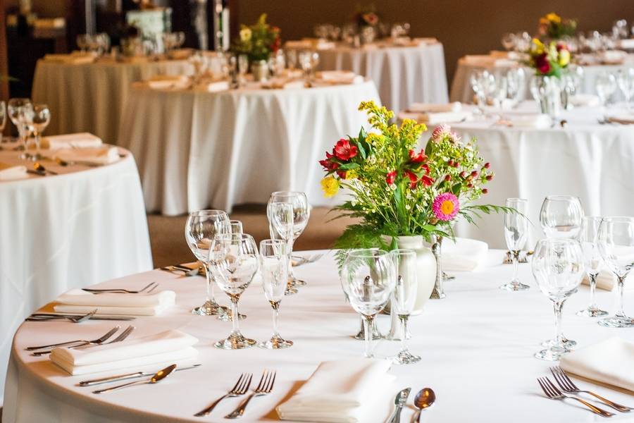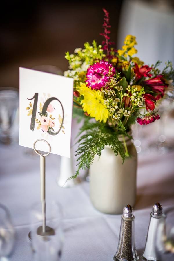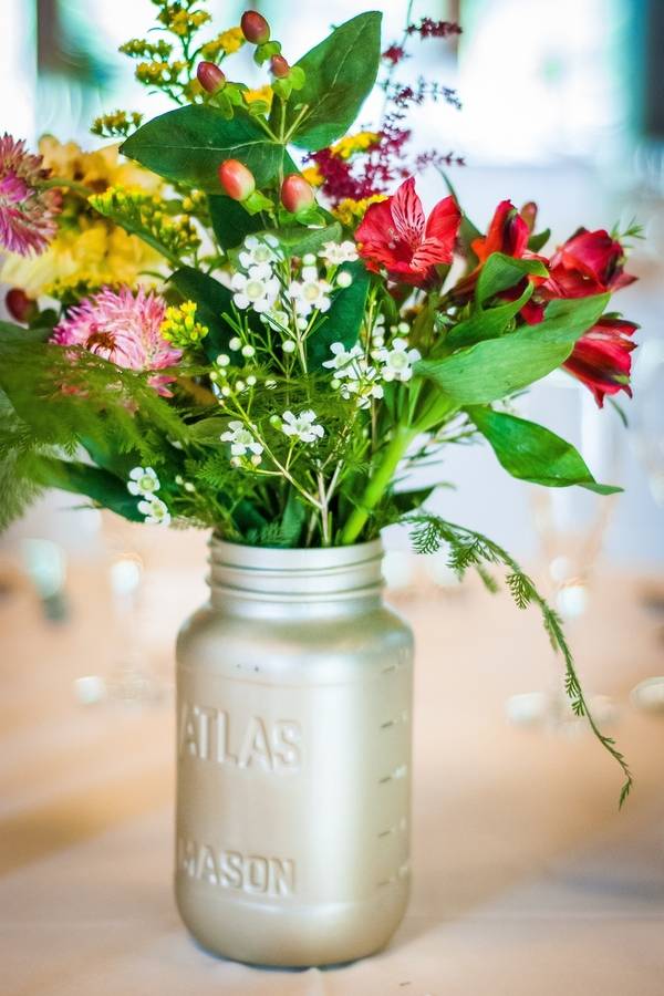 We bought cut flowers and made our vases for the centerpieces out of gold spray painted mason jars.