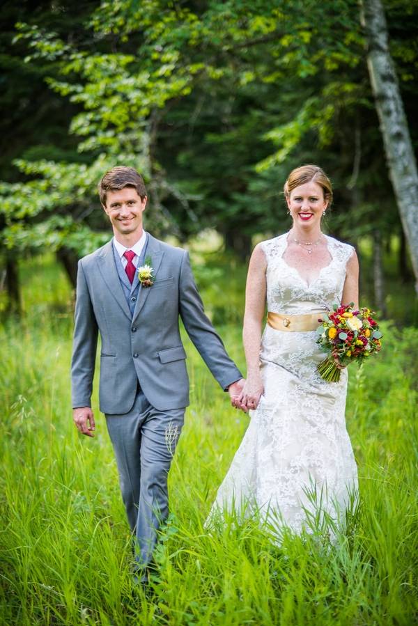 When you both crave and live for an adventure, it is only apt for your wedding to be non-traditional – the outdoors. I love how the nature’s lush made to be part in this wedding, the tall trees, and green grass were already a perfect “decor” or backdrop. While looking at Molly and Brandon’s wedding all I can think about is how seemingly lovely everything was. They cleverly thought that the perfect motif to go for would be red since it is an excellent contrast to the nature’s color. And though the reception was indoors they put wildflowers in vases as centerpieces to still give that outdoorsy vibe.