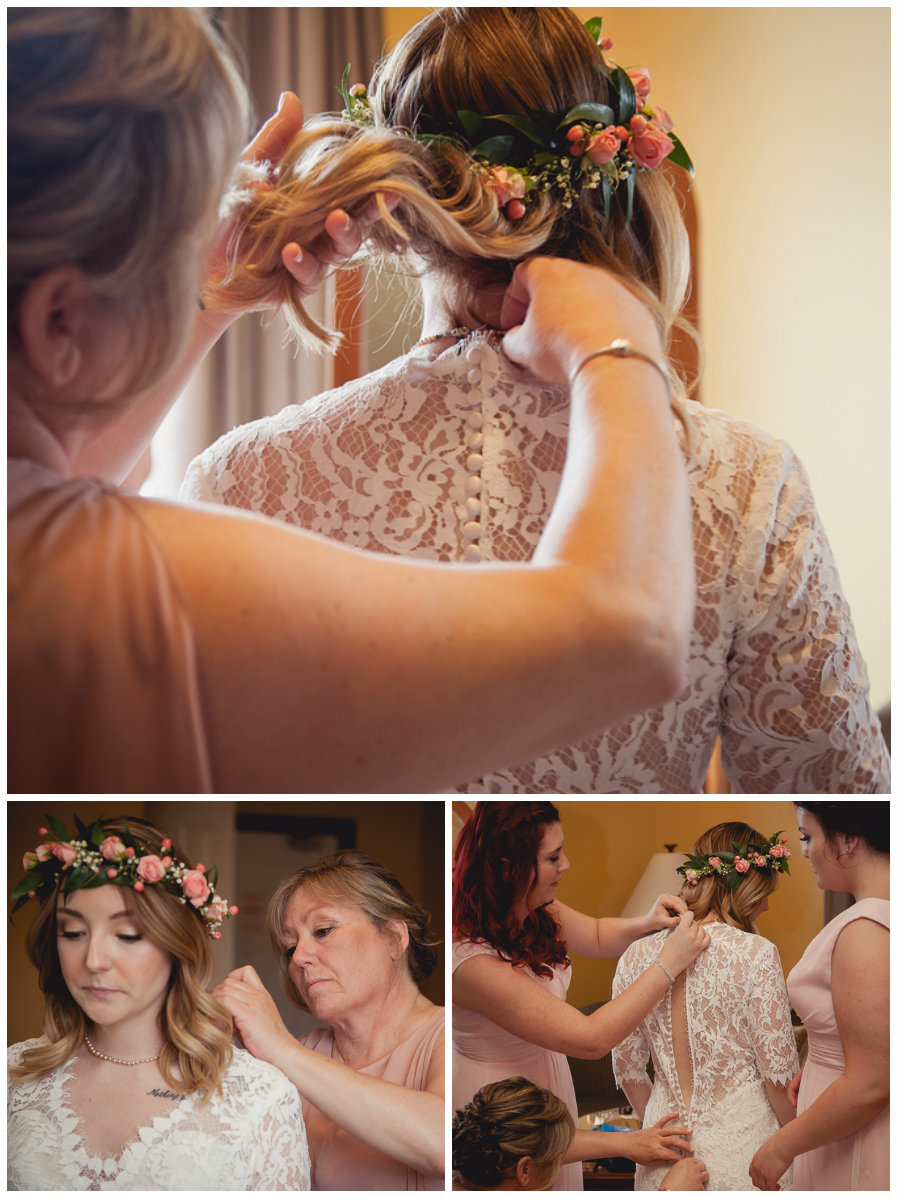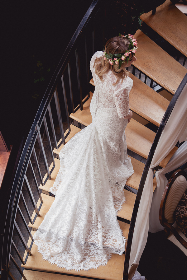 Samantha accessorized her lace dress by adding classic lace sleeves, her grandmother’s pearls, and a flower crown with sparkly shoes for a little glitz.