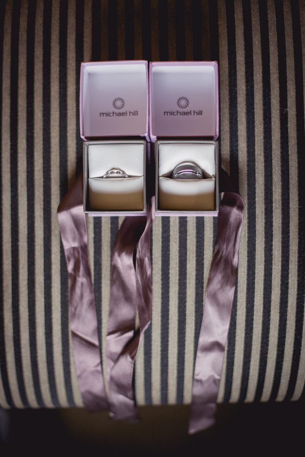 Set atop a waterfall, their ceremony was draped with clean white linens and framed with pink and green foliage.