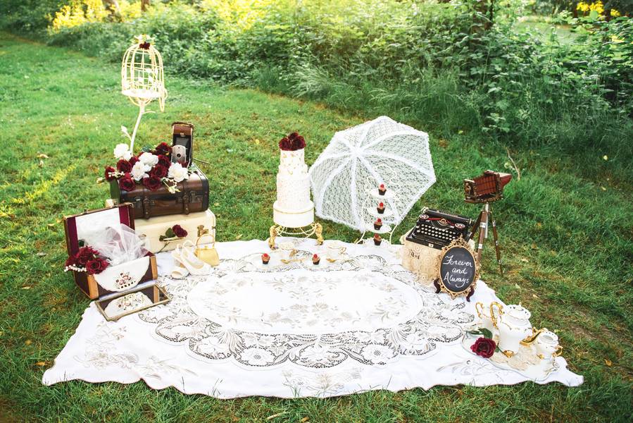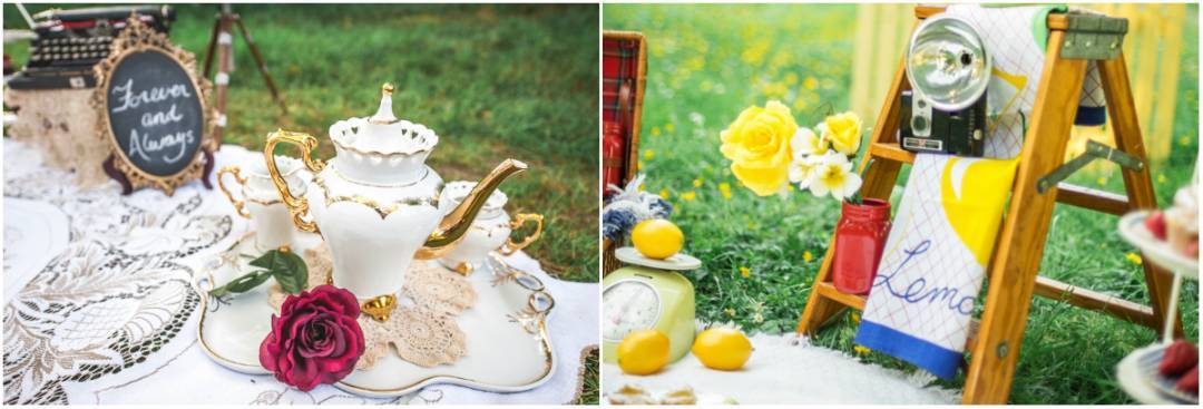 We wanted to do a 2 part picnic with contrasting themes; one is colorful and playful, and the other is more glamorous and pretty.