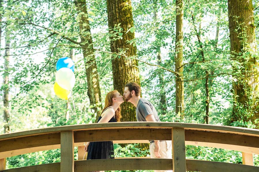 Because Krista and Mike love nature, we wanted to shoot at a forest location. This location has a lot of wild animals, like ducks, goose, squirrels, as well as a dog park where we could bring in the couple’s cat for the shoot.