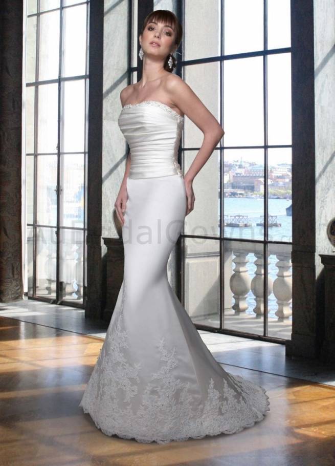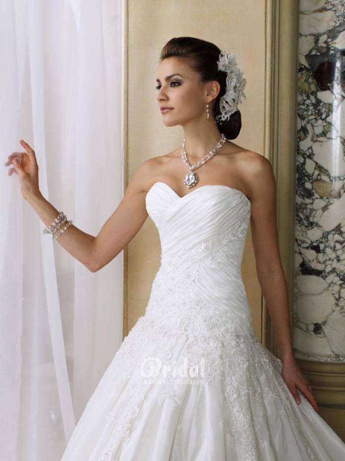 This beautiful neckline is very haute couture and beautiful, and it works well with brides of all shapes and sizes!