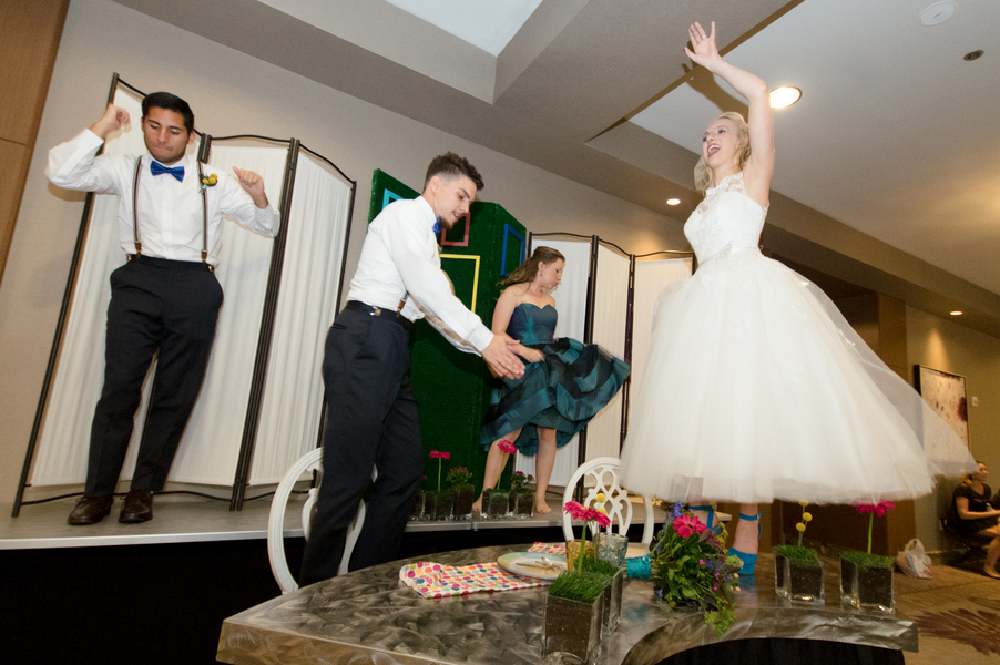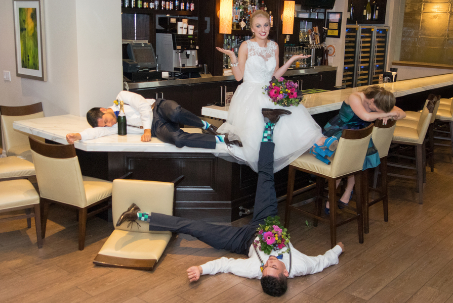 The fun. Shenanigans. The trickery was evident in every crazy detail! Rather than have a bridal gown that requires an extra set of hands just to get down the aisle, this bride, along with her maid of honor, went with dresses much more short and sassy.