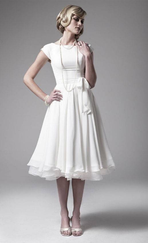- A tea-length hemline is a great way to capture the spirit of 50s and 60s brides.