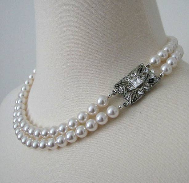If you really want to be authentic, spend a Sunday scouring the antique shops or checking out what’s available on Etsy or Ebay. You can often find gorgeous estate jewelry at a decent price…and no one has to know that it wasn’t your grandmother’s necklace. No matter which pieces you choose, just make sure that they complement your overall look. For example, you should forego a necklace if you’re wearing a gown with an intricate neckline.