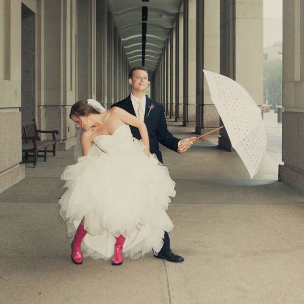 3. Wear rain boots with your wedding dress.