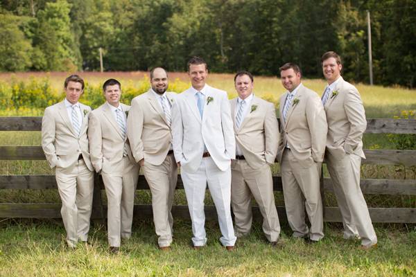 5. Opt for light-colored suits for the groom and groomsmen.