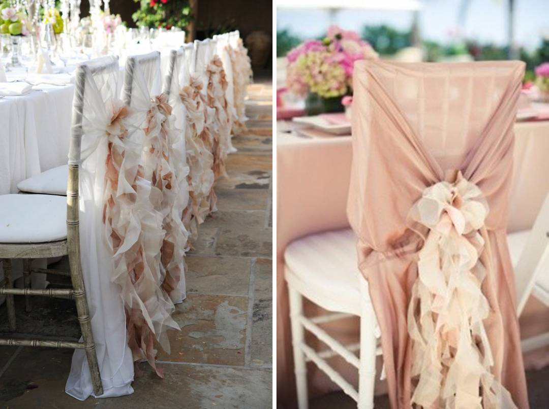 7. Add a spring look to your chairs with soft colors and wispy fabric.