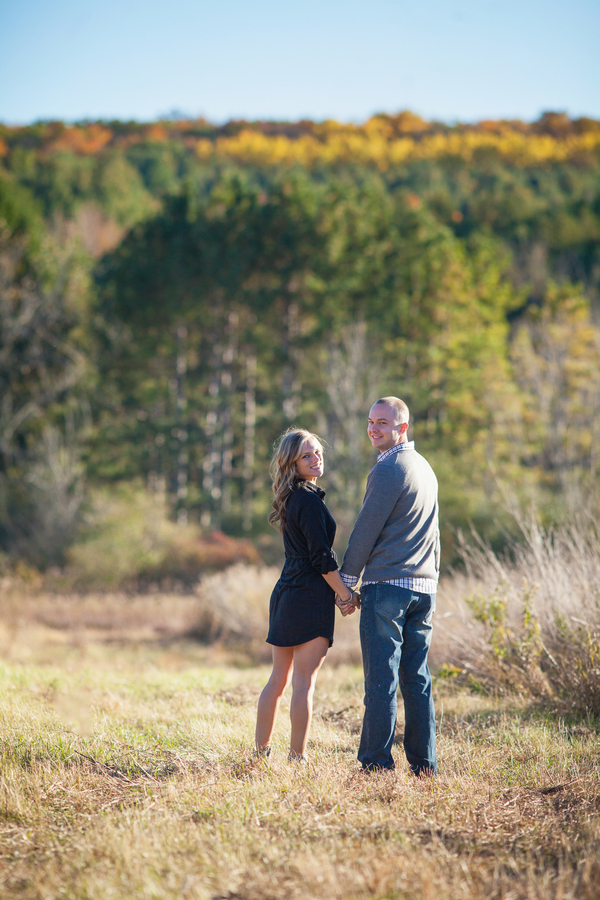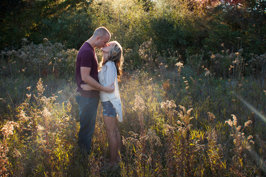 Jenna and Travis really wanted an outdoor engagement session at a location with trees, a wide open field, and maybe even a creek running through it. Luckily the photographer lives near the Kettle Moraine Forest, in Wisconsin, so they had lots of options! The shoot is in Nichols Creek Wildlife area, and the Parnell Tower loop.