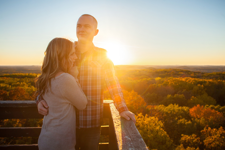 They ended their session by climbing to the top of Parnell Tower, and overlooking the beautiful Kettle Moraine Forest, which made for an epic sunset picture! The best thing about their engagement session was how in love these two are. You can tell by the way Travis holds Jenna and the way she looks up at him.