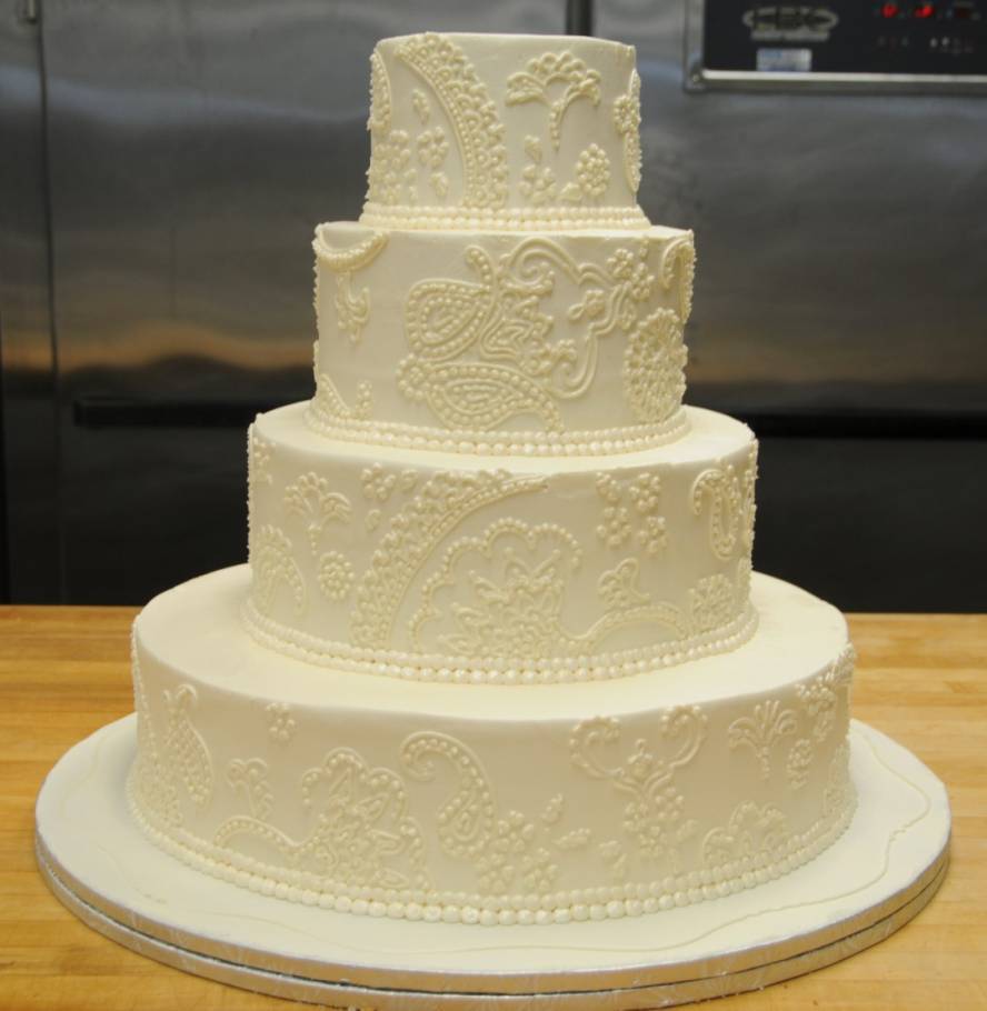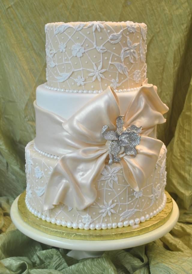Brides love fondant because it rolls out super smooth and can give a very sleek appearance and allows for certain designs that can’t be achieved with buttercream. Buttercream is created from butter and confectioner’s sugar and rather than being rolled on, it is spread on and then smoothed out. The most popular option differs depending on who you speak with, and seems to change every few years. While fondant was super popular a few years ago, buttercream is making a comeback in 2015.