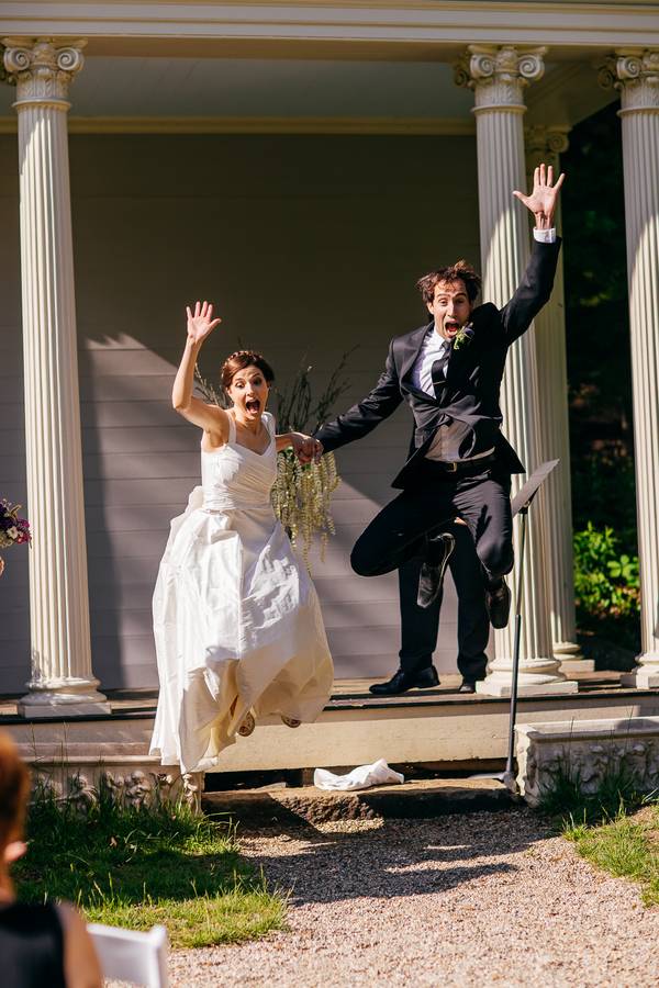 They are a funny and theatrical couple. At the end of the ceremony, they jumped high in front of their guests.