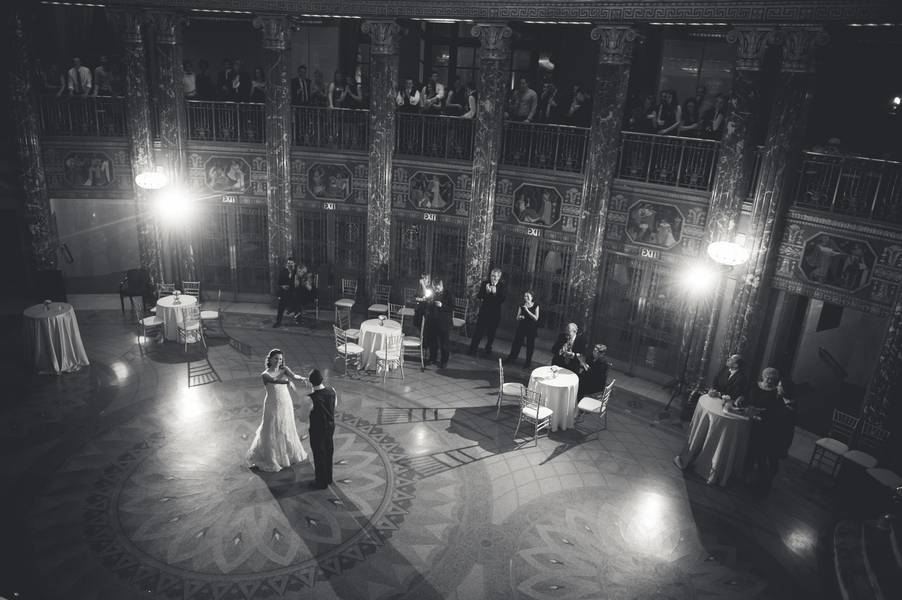 The Venue! The classic look of Severance Hall directed the formal tuxedos for the men, the long gowns for the women, and color scheme with blacks and gold details. The bride’s dress was a little non-traditional and was also gold! The room was so lovely and warm, that white would have been too stark. The gold kept with the whole theme!