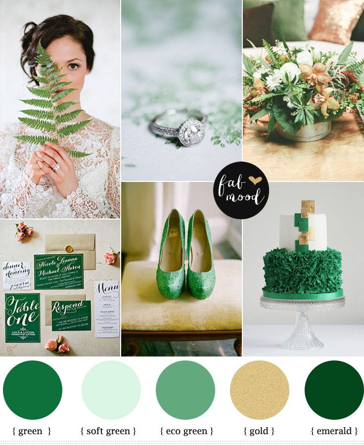 Finally, in this example you can see mint and gold paired with darker shades of green and emerald as well as pops of yellow. This look is stunning and perfect for a summer or early fall wedding.