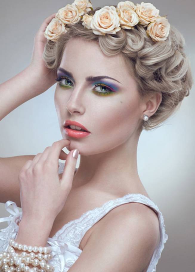 This bride is not quite as wild and carefree as the boho bride; she’s polished and put-together, and still looks amazing with the floral wedding headpiece. It’s a flirty look that might include sophisticated waves or curls with a simple or sparsely embellished wedding dress.