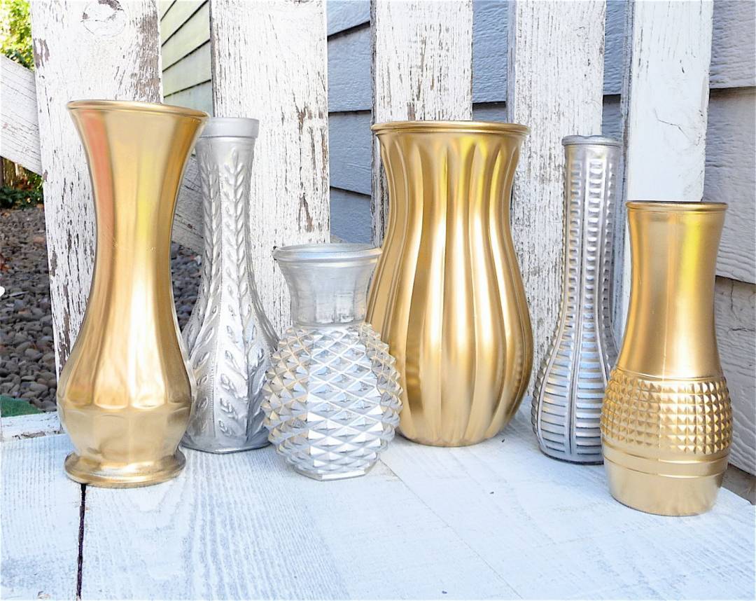 Locate old vases of any color at your local thrift store or garage sale and spray paint them all the same color. These make fantastic mismatched centerpieces that look amazing.