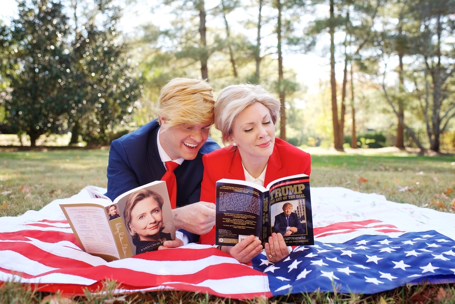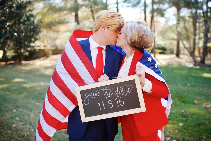 Good morning, America! Guess what? Donald and Hillary are mad in love with each other! Well, in this engagement session at least. Justin Wright, the mind, and eyes behind this fun engagement session, was inspired by the thought of Donald and Hillary secretly in love. Such a humorous and lovely way to look at things. Refreshing state from the hate and fear we see and hear lately. Let’s all spread the love!