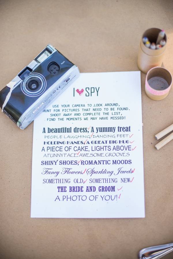 Having eight-year-old twin daughters, we invited quite a few kids to our wedding and wanted to do special things for them. We created a special kids table at the reception just for them. It was covered with craft paper and decorated with flowers made of tissue. And at each child’s place setting was a tube of pencil crayons to use to draw on the table if they wished. Along with it was an I SPY wedding items game and a disposable camera each to use to take pictures of all the things they needed to find. The candy table was a HUGE hit with the kids also.