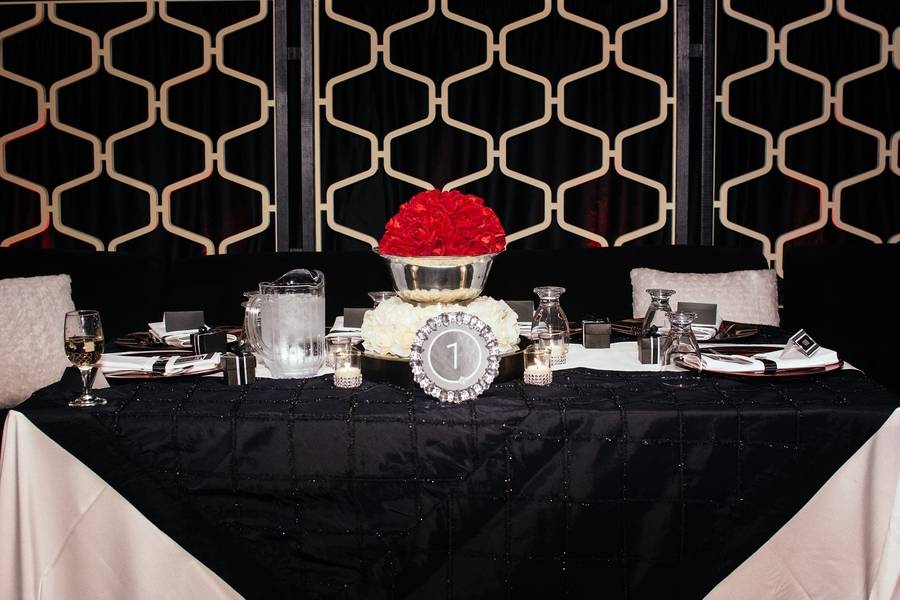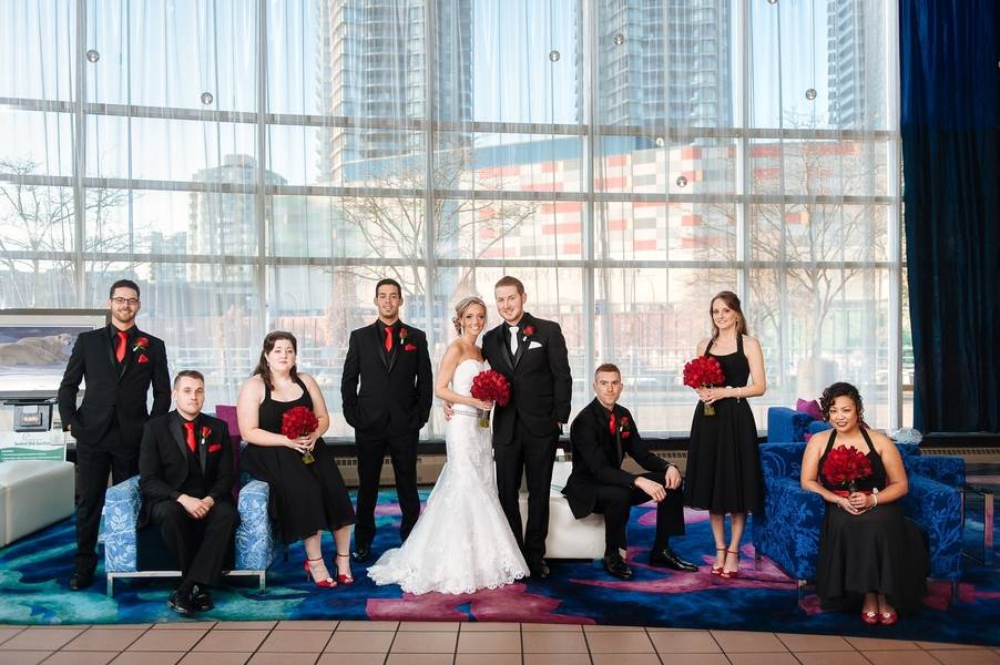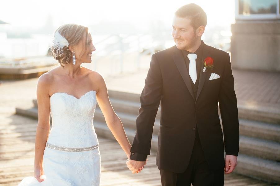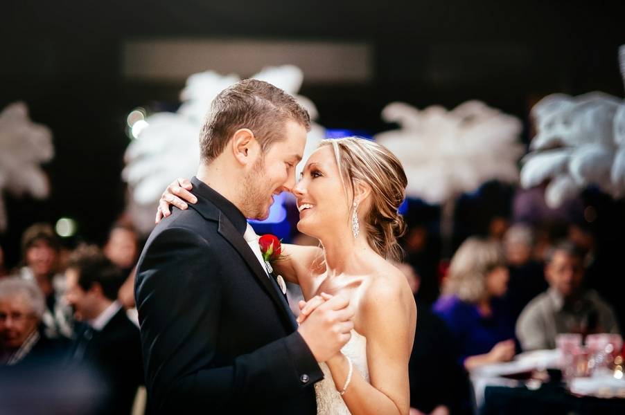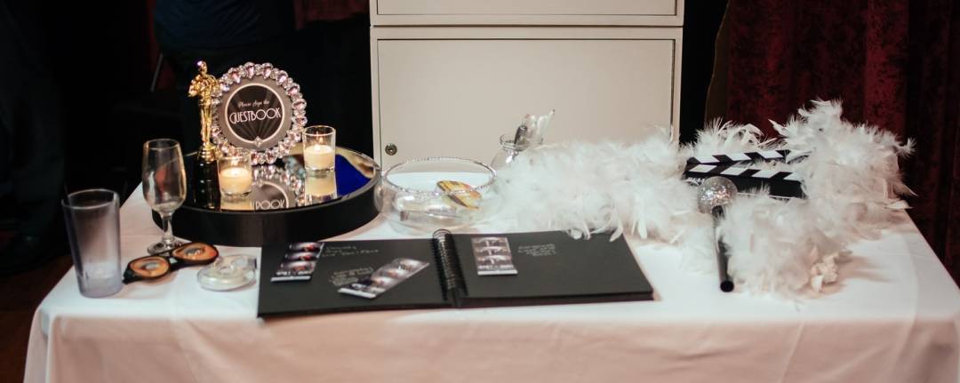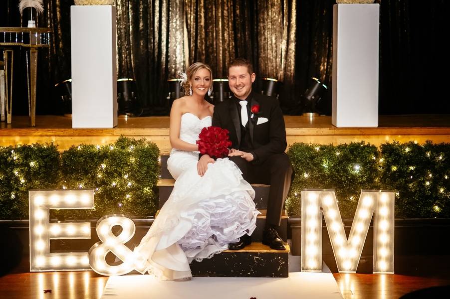 Emily and Matt had their wedding on a Thursday in January. It was actually their 8th Anniversary of the time they started dating. They had an old Hollywood themed wedding, with cardboard cut-outs of old Hollywood movie stars with old movies playing in the big screen during dinner. Emily is a designer, so she DIY’ed her entire wedding and created all of her centrepieces in her basement. The venue was at the Metro Banquet Hall in New Westminster, BC. It was a beautiful lounge that has actually been used as a movie set multiple times, which is kind of perfect.